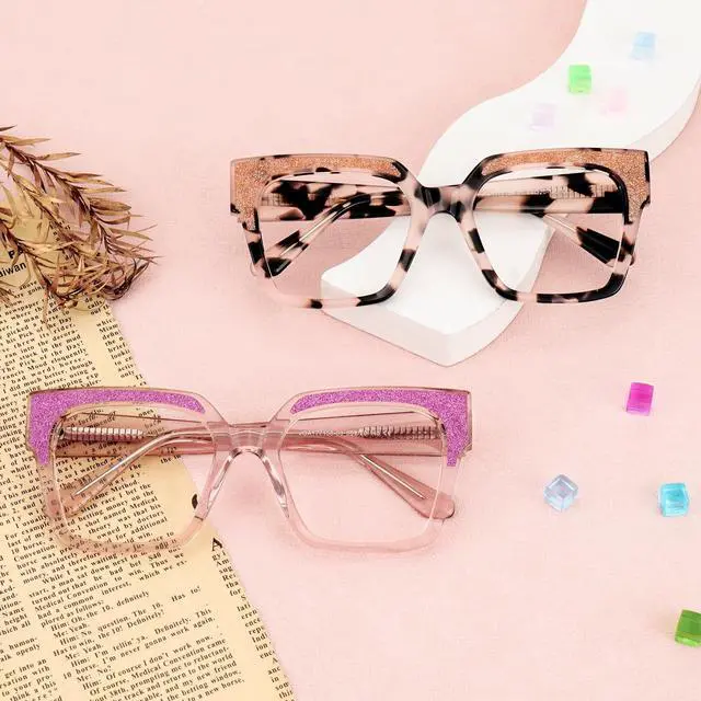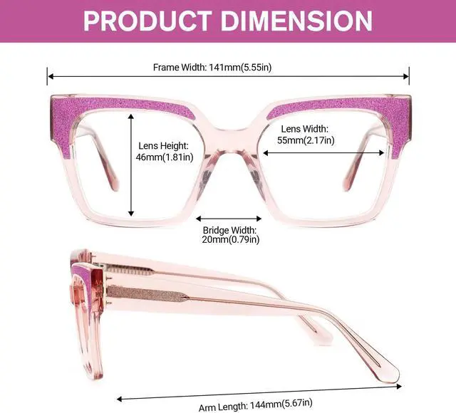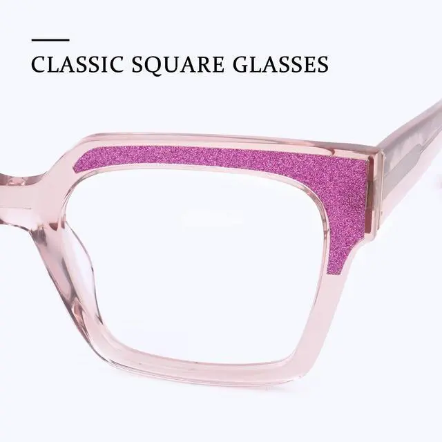 Classic square glasses frames, perfect for round faces and featuring a large frame design that complements your facial contours. ^^ Stylish decoration that appeals to women of all ages, adding a touch of sparkle to your look. ^^ Made from high-quality material that is more three-dimensional and durable compared to TR93 or plastic, ensuring long-lasting wear and resistance to scratches. ^^ Blue light blocking lenses designed to protect your eyes from harmful screen glare, with the option to easily replace with lenses of your choice. ^^ Outstanding customer service to ensure your satisfaction with our product.