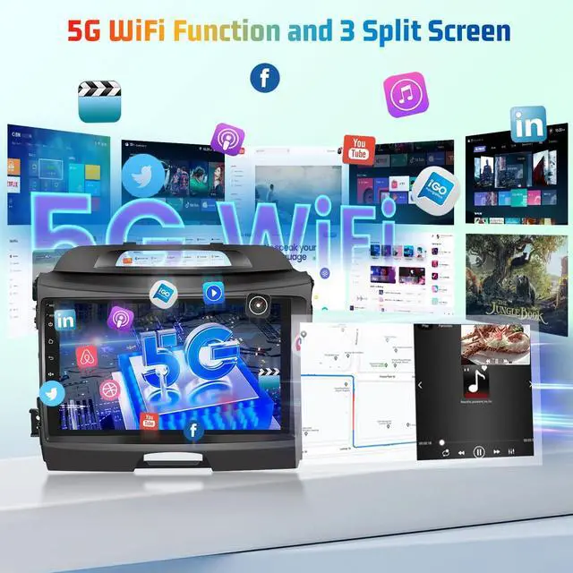 GPS Navigation: For KIA Sportage stereo stay connected on the move with 5G WiFi, enabling rapid downloads and buffer-free streaming of online maps, music, and content. The highly accurate GPS navigation system, powered by up-to-date mapping data, guides you precisely to your destination, even in the most complex road networks. ^^