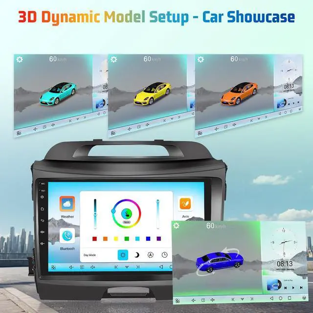 Cooling Function: Double din android stereo equipped with a DSP sound processor, this radio delivers professional-grade audio quality, allowing you to fine-tune sound settings for a personalized listening experience. The integrated cooling function prevents overheating during extended use, ensuring consistent and reliable performance. ^^ 3D Car Model