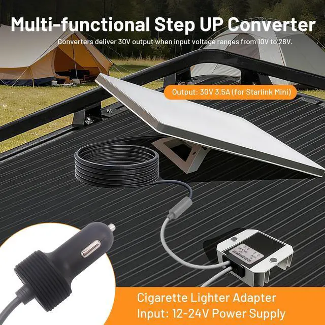 For Starlink Mini Compatibility: This Mini 12V power adapter is specifically designed for Starlink Mini, converting vehicle power to the 30V/ 3.5A output needed to keep your router running reliably. ^^ 10-28V Wide