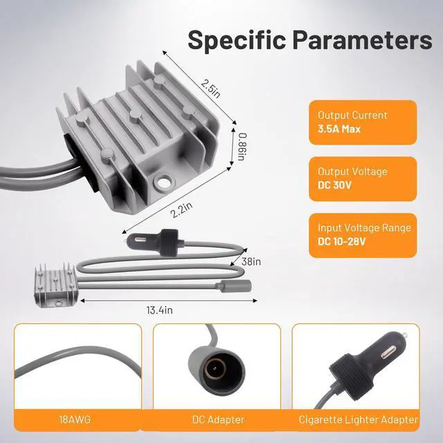 Cigarette Lighter Plug Design: Features a standard cigarette lighter plug for easy, tool-free connection to vehicle power outletsno complicated wiring or installation required. ^^ 30V 3.5A