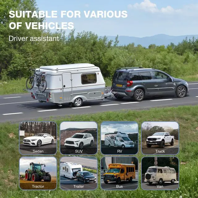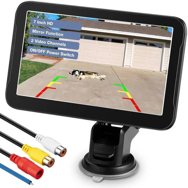 Backup Camera Monitor OnlyThis is a 7-inch TFT LCD color monitor for a backup camera, backup camera not included. Works with CVBS cameras and does not support AHD cameras ^^ HD ImageThis 7 inch backup camera monitor is equipped with an 1024 (RGB) X600 LCD screen, experience a crystal-clear HD view, provides a clear view to ensure safety when backing up ^^ 2 Installation MethodsYou can decide whether to install your monitor on the dashboard or the windshield based on your usage habits. The adjustable suction cup mount allows you to find the suitable viewing angle without obstructing your view ^^ 2-Way Video InputThe backup camera monitor has 2 ways video input interfaces.