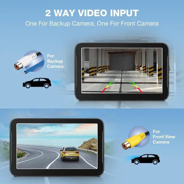 Both the white interface and yellow interface are video input interfaces. When two video signals are sent to the monitor simultaneously, if you want to prioritize the video signal from the yellow interface, please make sure to connect the blue trigger wire to activate the image from the yellow interface. The same applies to the white interface. The red interferece is power connector to get power from your vehicle ^^ Wide CompatibilityThe 7 inch backup camera display monitor is driver assistant, support 12V/24V, Suitable for Various of Vehicles, such as cars/trucks/trailers/RVs/vans/SUVs/campers and so on