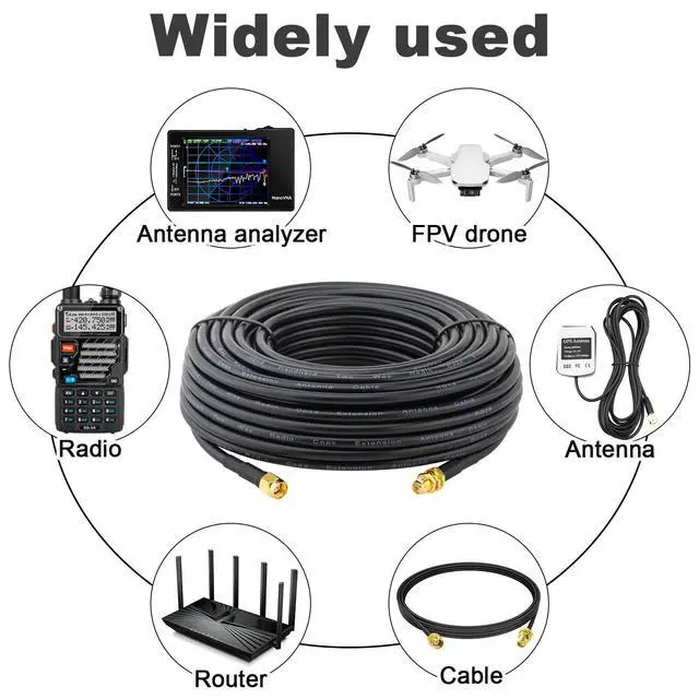 ^^ Fast Transmission: Independent channel transmission of RG58 sma cable is faster, reducing co channel interference, enhancing signal gain effect, and improving transmission performance. ^^ ApplicationRG58 coaxial cable used for antennas, coaxial cables, radio scanners, ham radio transceivers CB radio handheld & amateur radios. Relocate your antenna to a optimal position to improve the wireless.