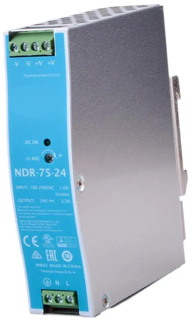 Meeting UL 508 and BS EN/EN61000-6-2 standards ensures the NDR-75-24 is a reliable solution for various industrial applications, including industrial control systems, semiconductor manufacturing equipment, factory automation, and electromechanical devices.