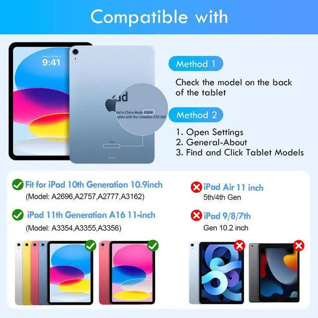 Generation 11-inch 2025(Model: A3354, A3355, A3356), compatible with iPad 10th