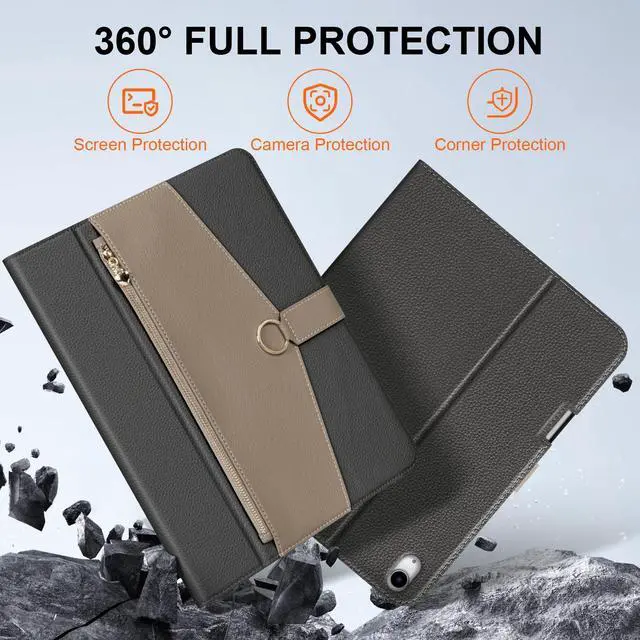 Storage & Versatile Viewing: Features a convenient zippered front pocket for cards, cash, or documents; Built-in adjustable stand provides multiple stable horizontal angles for optimal viewing, typing, video calls, or browsing.