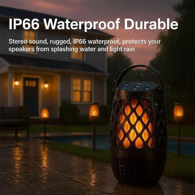 Multi-functional: Our Ulinkbee outdoor bluetooth speakers is both a stereo system and an LED night light, plus a unique LED flame speaker with dancing flame effects. Creates a clear 360 HD stereo immersive surround sound for outdoor events and gatherings, giving your party or outdoor event a greater sense of atmosphere and space. Perfect for the yard, garden, BBQ, and camping ^^
