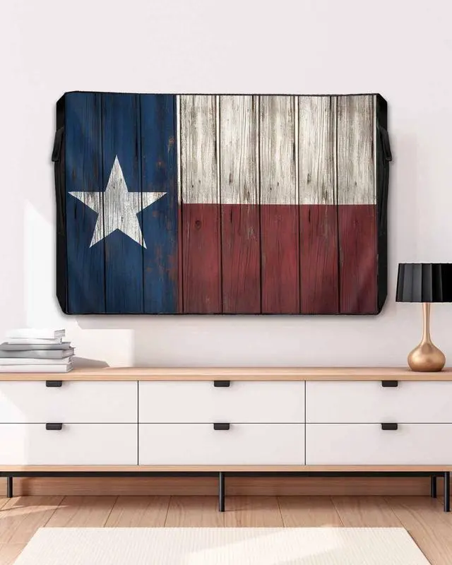 Lsrtoss Western Texas Star Outdoor TV Cover 70-75 Inch Weatherproof, Country Outdoor TV Enclosure with Zipper & Roll Up Front Flap, Blue White Red Wood Waterproof TV Covers for Outside Flat Screen TV