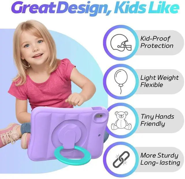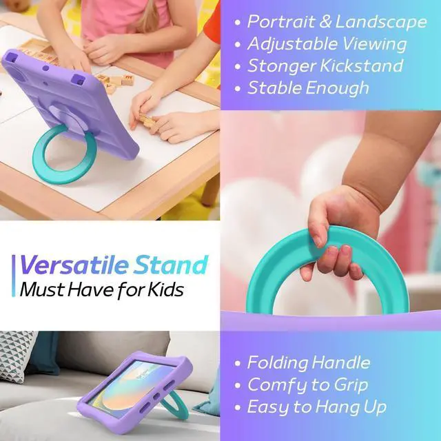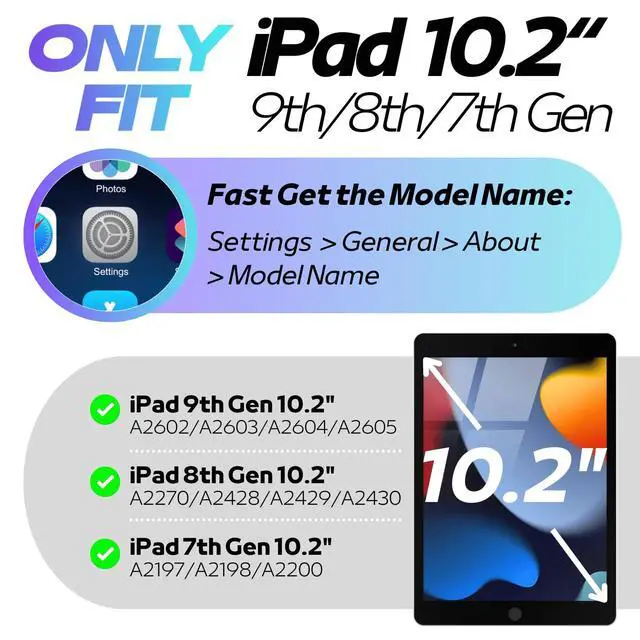PLEASE FIT CORRECT IPAD DEVICE - This case can ONLY FIT the iPad 9th generation 10.2 inch (Model: A2602 A2603 A2604 A2605) / iPad 8th generation 10.2 '' (Model: A2428 A2429 A2430 A2270) / iPad 7th generation 10.2 in (Model: A2197 A2200 A2198). PLEASE CHECK THE MODEAL NAME OF YOUR IPAD CAREFULLY before purchase ^^ THE CASE MAKES KIDS LIKE - The case is kid-proof, featuring a friendly outline suitable for tiny hands. Made of high-performance, light weight and soft material, it is extremely comfortable to use. The versatile stand - handle is a must-have for children. Moreover, it is incredibly robust for long-lasting use ^^ ULTIMATE FLEXIBLE PROTECTION - The rugged case provides better protection with reinforced corners, additional front bumpers and inner soft cushioning, which is made of highly elastic EVA foam. It is capable of absorbing more impact and shock, protecting kids iPad from drops ^^ VERSATILE STAND HANDLE - Offering landscape, portrait and multiple viewing angles, the kickstand can easily free kids tiny hands. It is stable enough on several uneven surfaces, which is a challenge for most other stands. Open it to serve as a comfortable handle for gripping and carrying ^^ STURDY AND COMFY FOR USE - Well crafted with high-performance materials and reinforced construction. The case is very easy to assemble or remove. It has precise cut-outs for buttons, ports and cameras, enabling you to access all features with ease.
