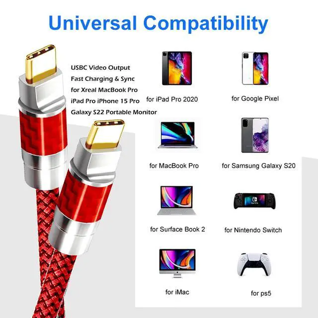 Note: As for the video feature, make sure your device hasa USB C port that supports DP Alt mode 40Gbps data transfer, 2x faster than 20Gbps. 240W PD charging, faster than 100WBroadcompatibility Type-C cables are compatible with almost all USB-C devices, including phones, tablets, and laptops Compatible with iPhone 15/16/17/, 15/16/17 Pro, 15 /16/17Plus, 15/16/17 Pro Max, MacBookPro Air iPad Pro/Mini/AirDell XPS/Latitude ThinkPadGalaxy Tab S8/S8 Plus, Galaxy S23/S22/S21, etc
