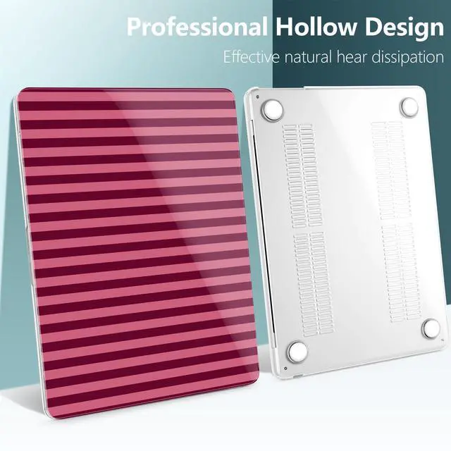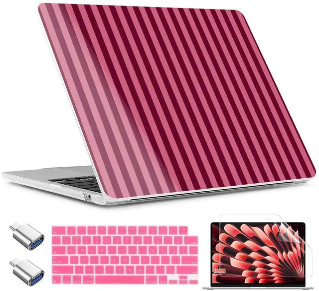 TWOLSKOO Compatible with MacBook Air 13 inch Case M5 2026 M4 2025 M3 M2 2024-2022 A3449 A3240 A3113 A2681, Plastic Hard Shell & Keyboard Cover for MacBook Air 13.6 inch Case, Dark Pink Stripes