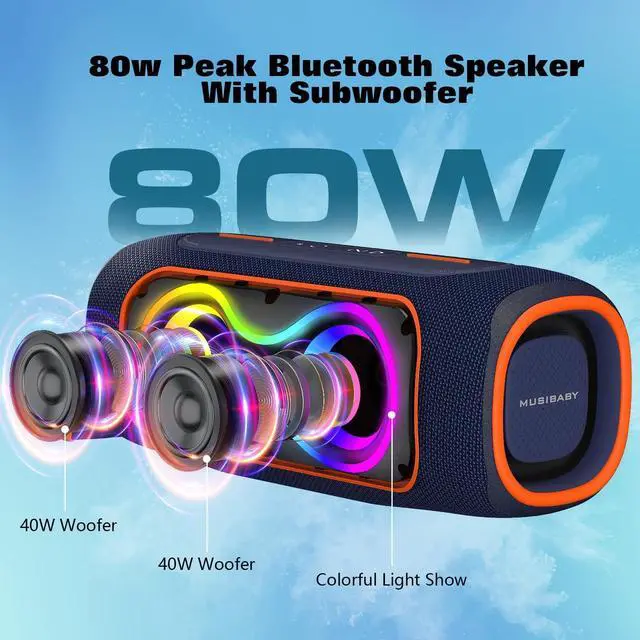 POWERFUL SOUND: Experience powerful 80W stereo sound with enhanced deep bass and clear highs. This loud portable Bluetooth speaker fills indoor and outdoor spaces with rich audio, making it great for backyard gatherings, camping trips, and everyday music. ^^