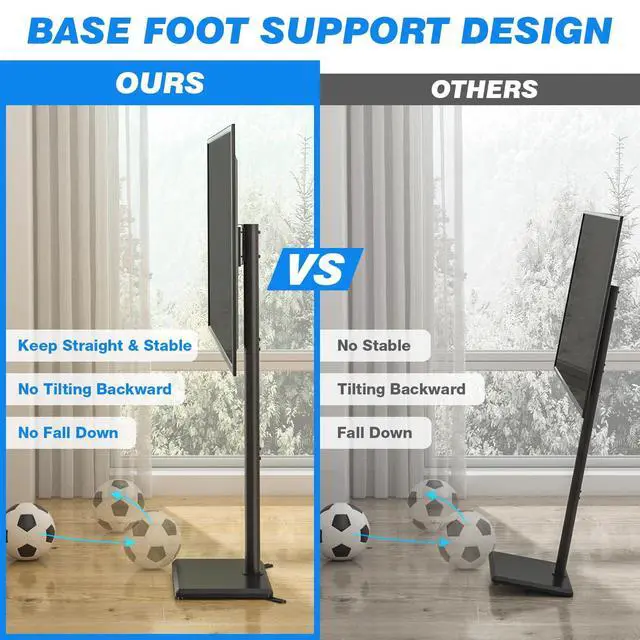 INCH SCREENS: We carefully designed this floor TV stand to accommodate most 32, 39, 40, 42, 43, 48, 49, 50, 55, 60 inch screens with a 88 lb weight capacity. It supports VESA mounting patterns from 100100 mm to 400400 mm. To ensure compatibility, verify your TV's screen size, weight, and VESA specifications before purchase.