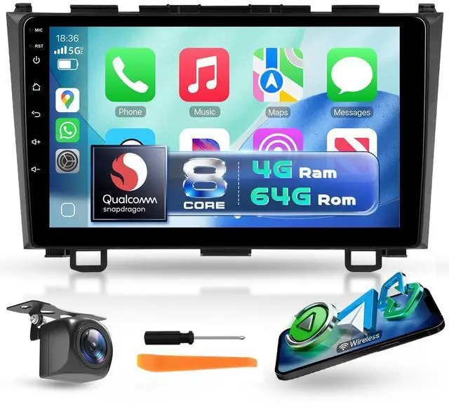 This Honda CRV stereo includes GPS support with pre-installed offline maps (data download requires internet), Bluetooth 5.1 for stable phone pairing, dual USB ports, and AHD/CVBS reversing input (include a free backup camera) for easy parking with your Honda CRV radio. ^^ Wireless CarPlay & Android Auto (Hands-Free)This car radio supports Wireless CarPlay and Android Auto, enabling hands-free calls, voice-controlled messages, navigation, and music playbackcompliant with US distracted driving laws. No more fumbling with your phone; enjoy Honda CRV carplay convenience and stay focused on the road while accessing your favorite mobile apps directly on the Honda CRV stereo screen.