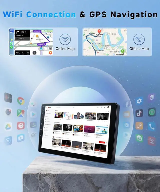 ^^ Powerful 8-Core Chip & Built-in DSPPowered by a Qualcomm Snapdragon SM4250 8-core 1.8GH z chip, this car radio delivers powerful processing performance for seamless video rendering, intelligent voice interaction, and quick command responses. The built-in DSP in this CRV radio lets you customize the equalizer, optimizing bass depth, midrange clarity, and treble transparency for a premium in-car audio experience with your crv car stereo. ^^ FM/RDS Radio & Multifunctional ConnectivityBuilt-in FM/RDS radio for your car radio provides clear reception of local US stations, delivering real-time traffic updates, news, and music.