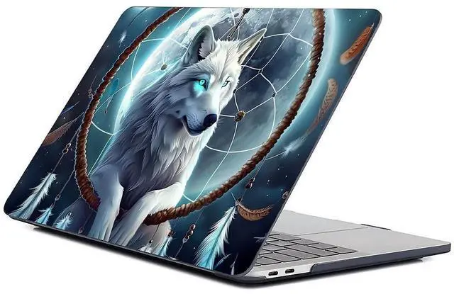 Goodsprout Computer Case for MacBook Air 15 Inch Easy White Wolf Colorful Pattern Black Release 2023 Model A2941 Hard Shell Case Compatible with MacBook Air 15 Inch