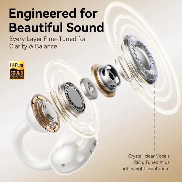 Upgraded Clip-On Earbuds Loved by 100K+ Users. Based on the trusted open-ear structure loved by over 100, 000 users, this rose pink edition has been fully upgraded in four key areas: 25% lighter weight, enhanced sound clarity, longer 50H battery life, and more stable Bluetooth 5.4 connectivity. Its the same comfort and design people lovenow even better for small ears and everyday use. ^^ Unmatched Comfort for Small Ears & Glasses Wearers. Redesigned with a flexible C-shaped clip, these open-ear earbuds now weigh just 4.0 g eachperfect for pressure-free, all-day wear. Whether you wear glasses, earrings, or both, the clip-on fit stays stable during workouts, commuting, or lounging. No slipping, no pinching, just pure comfort. ^^ Crystal-Clear Sound & Noise Cancelling Calls. Tuned for clarity and balance, the upgraded drivers bring out crisp vocals and rich midsideal for music, audiobooks, and videos. Dual beamforming microphones with advanced ENC noise cancelling ensure your voice is always clear, even in wind or busy environments. These wireless Bluetooth earbuds make every call feel face to face. ^^ 40H Playtime + Bluetooth 5.4 for Seamless Streaming. Enjoy up to 6 hours on a single charge and 40 hours with the charging case. Bluetooth 5.4 ensures faster pairing, zero-latency streaming, and more stable signalperfect for workouts, walks, or working from home.