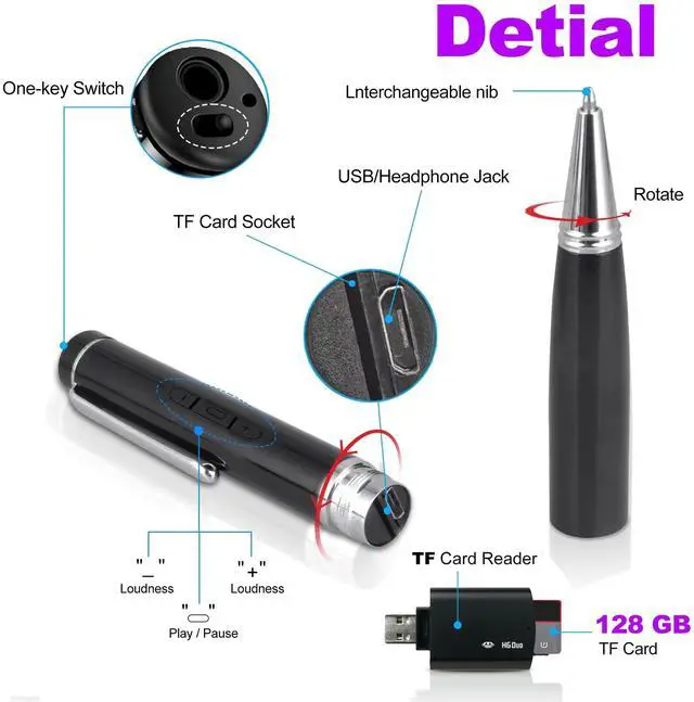 ^^ [Complete Accessories & Versatile Use Cases] -Everything you need comes right in the box: the digital voice recorder (with 128GB microSD card), USB cable, earphones, earphone in-line remote, replacement refills*10, and user manual. Fully equipped for a wide range of scenariosperfect for classes, meetings, interviews.