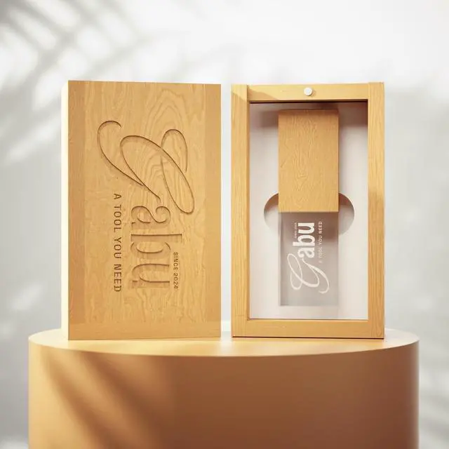 Materials: Crafted with a combination of premium wood and tempered glass, the Gabu USB flash drive is not just a storage device but a statement piece. The natural wood provides a warm, organic feel, while the glass adds a touch of sophistication and modernity.