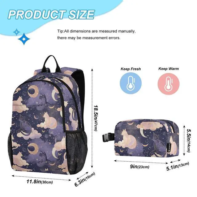 Large Size: Schoolbag - 18.5 x 11.8 x 6.3 inch/47X30X16 cm. Meal case - 9X 5.1X 5.5 in/23X13X14 cm ^^