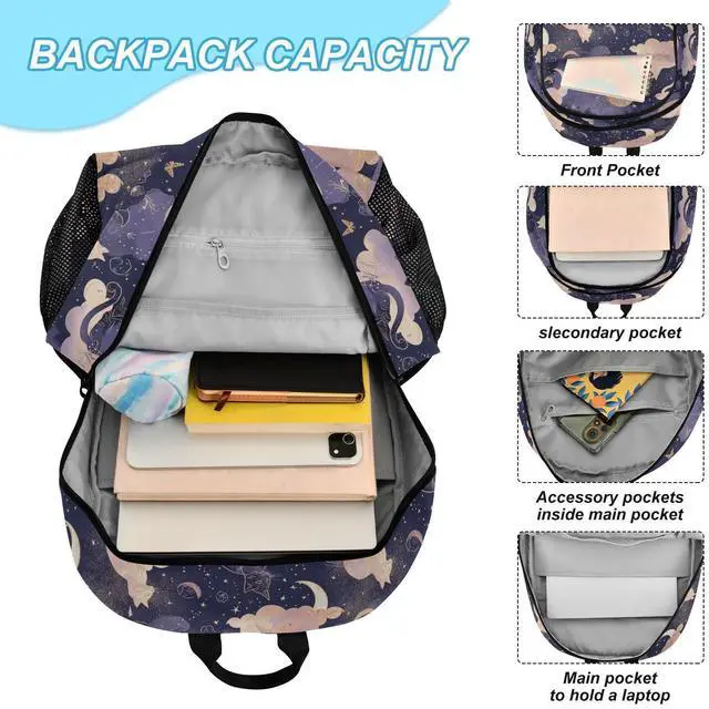 Roomy: Daypack has a main compartment and a slot for laptops below 15.6 inches. The entire day pack has 6 multifunctional pockets, which is convenient for storing small items such as water cups, umbrellas, keys, etc.