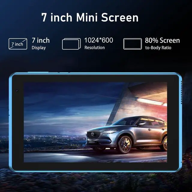 ^^ 7" Screen + Eye Protection The android 14 tablet has a 7-inch high-definition screen. IPS eye protection HD touch screen. The screen is designed to reduce glare and provide greater clarity and brightness. It protects your eyes by reducing the damage caused by blue light, making tablet use safer and more comfortable. ^^ Easy to Carry This small tablet only 7 inch size and lightweight, very easy to hold. You can put it in poket, small bag etc, it well suitable for working and entermainment when home, travel.