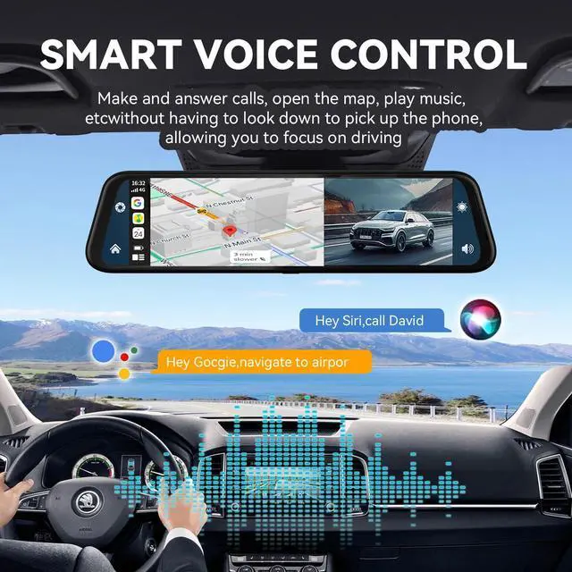 Driving Safety: The rear view mirror camera is equipped with voice control. In CarPlay/Android, you can use Siri /G**gle to access apps at will. (The voice - receiving device is your phone. ) In the DVR interface, you can use the following voice commands: "Show front camera", "Show rear camera", "Turn on display", "Turn off display", "Show all cameras". During driving, there's no need to reach out or look down to operate, which improves your driving safety and convenience. ^^ Multiple