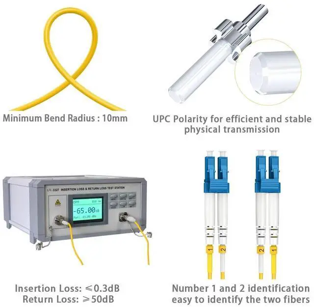 ^^ Industry StandardThe OS2 LC-LC Fiber Patch Cords are built to industry standards. With LSZH (Low Smoke Zero Halogen) jacket, LC/UPC to LC/UPC connectors, 9/125m high-rated fiber cladding, and a 2.0 mm cable diameter, feature an LSZH environmentally friendly jacket, Zirconia Ceramic Ferrule, and 15mm minimum bend radius, all in accordance with EIA/TIA 604-2 standards, ensuring optimum insertion loss (IL) and return loss (RL) performance. ^^ Enhanced ServiceChoose RamboCables for a hassle-free bulk purchasing experience with our 4-Pack OS2 LC-LC Fiber Patch Cables. Our competitive pricing and convenient packaging offer cost savings compared to purchasing individual cables.