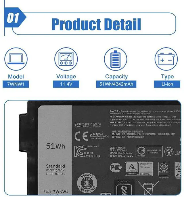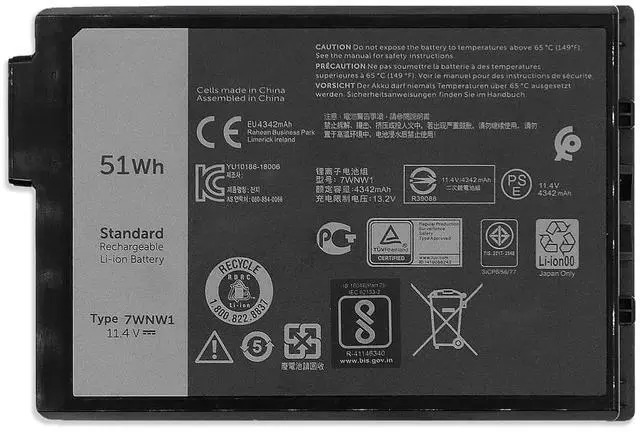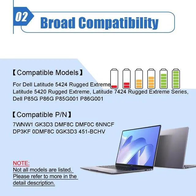 Battery Color: Black ^^ Compatible P/N 7WNW1 GK3D3 DMF8C DMF0C 6NNCF DP3KF 0DMF8C 0GK3D3 451-BCHV ^^ Compatible Laptop Models7WNW1 Battery fits Dell Latitude 5424 Rugged Extreme, Latitude 5420 Rugged Extreme, Latitude 7424 Rugged Extreme Series, Dell P85G P86G P85G001 P86G001 ^^