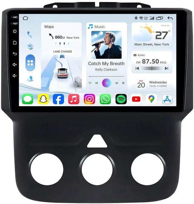 Carplay & Android Auto Compatibility -- Seamlessly integrate your Phone with carplay or android auto. Access navigation, make calls, send messages, and play music safely while driving. ^^ Bluetooth Handsfree -- The stereo for dodge ram radio supports Bluetooth 5.4 voice control, just say commands such as "play music", "GPS navigation" or "make a call". You will not be distracted while driving, making the journey safer. ^^ 5G WIFI Connectivity & GPS Navigation -- Stay connected with built-in 5G WiFi and enjoy real-time GPS navigation. Download maps, stream music, and access online content directly from your car stereo.