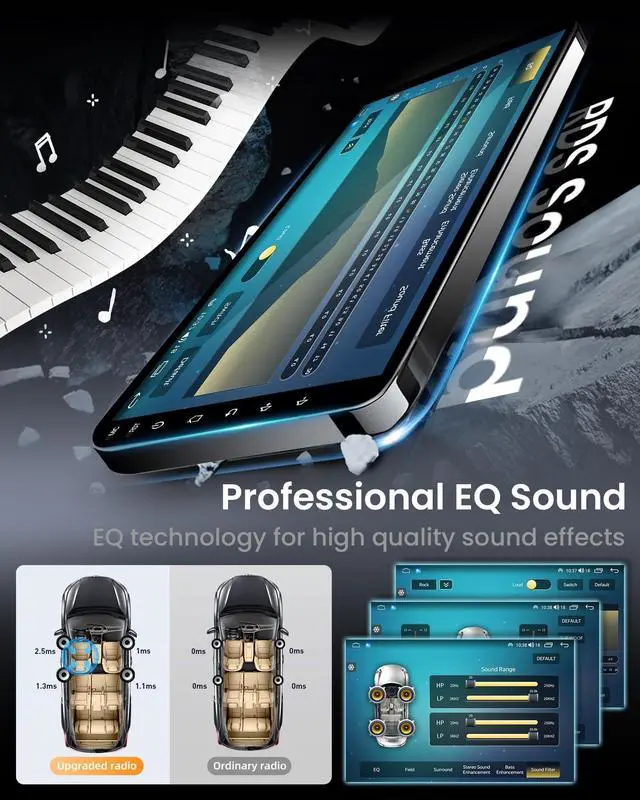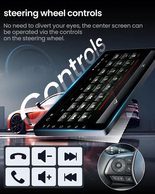 Never get lost with accurate and up-to-date navigation ^^ 1080P Backup Camera -- The car radio comes with a 170 viewing angle night vision waterproof backup camera, ensuring clear visibility while reversing, eliminating any concerns about potential blind spots. Supports steering wheel control, allowing you to control your car radio through the steering wheel buttons. ^^ Crystal-Clear 9" IPS Display & Enhanced Audio Experience -- Ultra-responsive 1280x800 HD touchscreen with IPS technology for 178 wide viewing angles. Features anti-glare coating for perfect visibility day or night. Fine-tune your sound with FM EQ settings, 32-band equalizer presets (Jazz, Rock, Pop) tailors audio to your preferences.