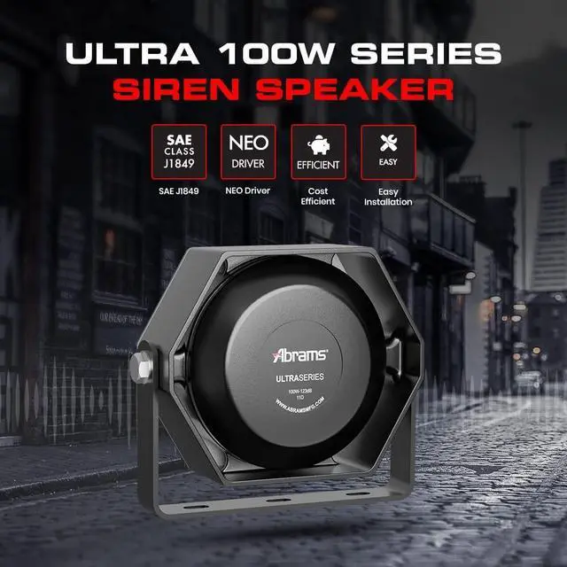 Product Features: Neo-driver for increased dependability. Quick, easy and cost efficient installations. 100-Watt high-output power. Corrosion-resistant aluminum housing with Black Finish. Sound output meets SAE J1849 and Class A. Slim and lightweight housing.