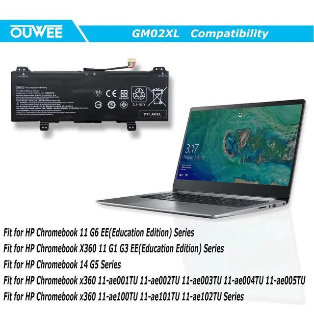 Condition: Brand new, from high quality materials, top circuit boards and smart chip. ^^ Fully compatible and high stabilityReplacement for HP Chromebook 11 G6 EE Series Notebook, for HP Chromebook 14 G5 Series Notebook, for HP Chromebook X360 11 G1 EE Series Notebook ^^ Replacement Battery Part NumbersGM02XL GMO2XL HSTNN-DB7X 917679-271 917679-2C1 917725-855 HSTNN-UB7M ^^ Safe to UseAll OUWEE products are Certified by UL / CE / FCC / RoHS for safety. Strict guidelines for compatibility, strict quality control standards to ensure the true capacity, stable current and low self-discharge and standards compliance for environment safety. We are confident in the performance of the replacement battery.