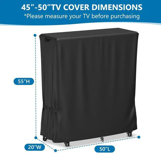 Perfect Size Design: This outdoor TV cover measures 50"L x 20"W x 55 "H. It is suitable for installation on 45-50 inch televisions or monitors mounted on wheeled mobile stands. Please measure your television dimensions before purchasing.