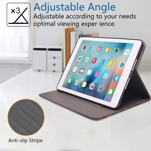 This DEHJYYIJUY Case for your iPad is a must have and perfect companion for an easy and enjoying life. The Unique design iPad case makes your Tablet different and eyes-catching. add a safe protect and exquisite appearance to your device. Why You Choose Us Made of High end PU leather, features shockproof, protective smooth outer casing and sturdy exterior with soft microfiber interior keeps your iPad screen safe. Anti-slip colloid cover linning can help your device stand stably, You can freely adjust multiple angle to comfort you when watch videos, typing, gaming or learning, etc.