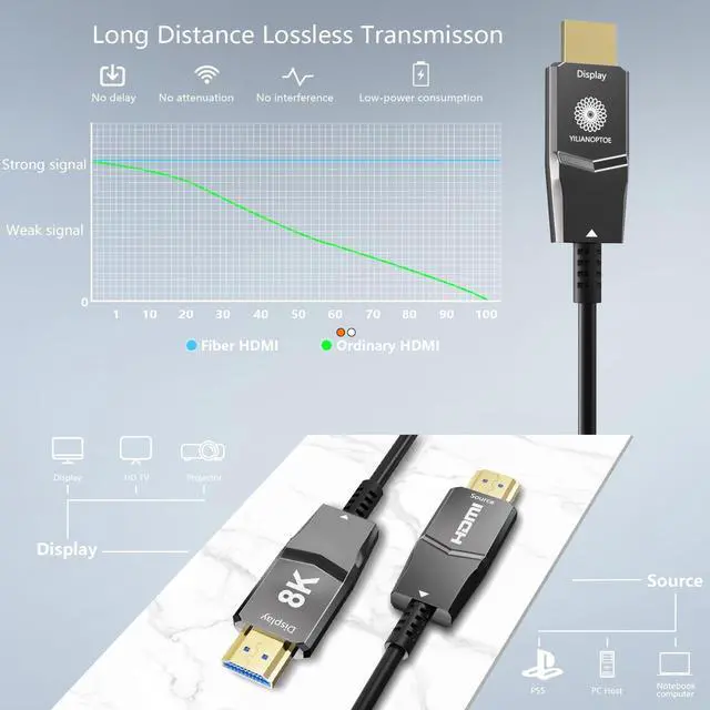^^ Future Cable: The future must be 8K, with the development of science and technology, the existing 4K can no longer meet our needs. YilianOptoe 8K Ultra high speed optical-electrical hybrid cables uses the most cutting-edge technology, stable signal transmission, improve picture quality, fidelity visual effect.