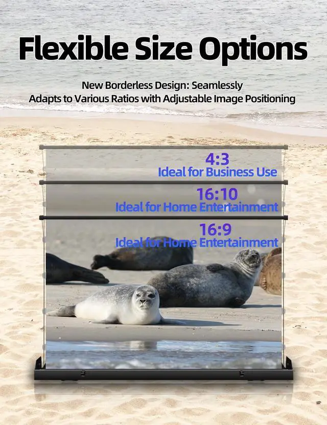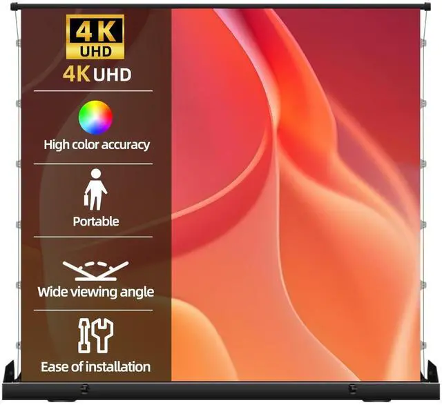 Perfect Viewing: Customize the screen height effortlessly to suit any space or audience size. Whether you're presenting to a few colleagues or entertaining a large crowd, the adjustable height ensures optimal viewing. ^^ Stunning 3D & 4K
