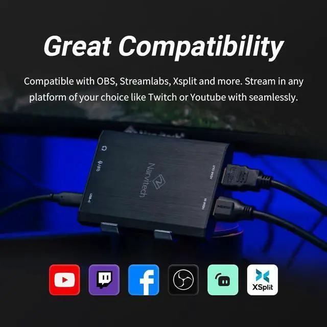 UPGRADE TO 4K STREAMING Capture and record in stunning 4K30 for professional-quality content. ^^ ULTRA-SMOOTH PASSTHROUGH Supports 4K60 HDR, 2K144, and 1080P240 passthrough for the best gameplay. ^^ WIDE DEVICE COMPATIBILITY Stream from Switch 2, PS5, Xbox Series X/S, PC, Mac, and Steam Deck. ^^ PLUG & PLAY DESIGN No drivers or setup needed, works instantly with OBS, Streamlabs, and XSplit. ^^ LOW LATENCY PERFORMANCE Delivers near real-time capture, perfect for competitive gaming & streaming.