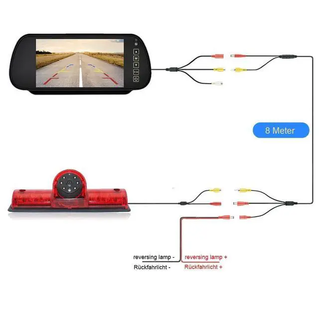 Kids Easy DiagramPackage Content: 1 x 7 inch rear view mirror1 x power cable (for monitor) 1 x User Manual (for monitor) 1 x Car Rear View Camera 1 meter DC cable (for the camera) 8 meter AV cable (for camera)