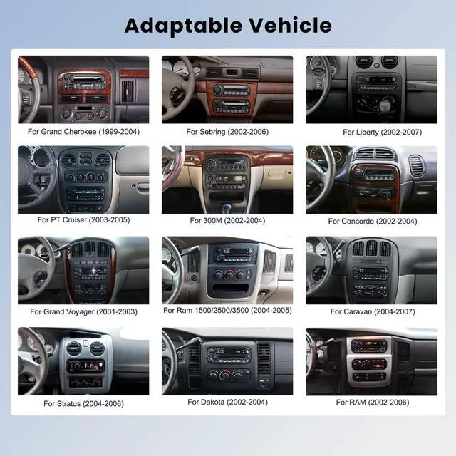 Chrysler: PT Cruiser (2003-2005), Sebring (2002-2006), Town & Country (2004-2007); for Dodge RAM 1500/2500/3500 (2002-2006), Caravan (2004-2007), Dakota (2002-2004), Durango (2002-2003). Ensure a seamless fit and factory-style look. If you re unsure about compatibility, feel free to ask us for assistance. ^^ [Android 13