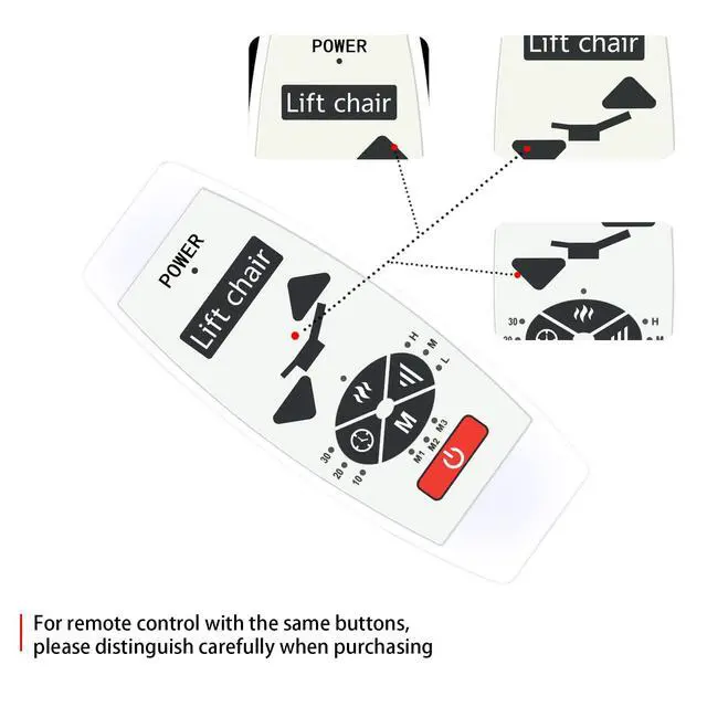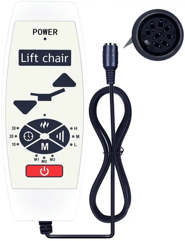 Perfect CompatibilityRemote Control Compatible For 5 pin plug Recliner Lifting Chair ^^ Premium QualityWith infrared 3.0 technology and better craftsmanship, the remote control signal stays strong and responds fast to your every movement while it feel great to hold and touch. And its control distance covers 32 feet and an angle of more than 120 degrees, you'll have a great using experience ^^ Easy To UseThe remote control does not need any programming or pairing ^^ PackageNew Replacement Remote Control *1 ^^ SeviceBringing good products and services to customers has always been our pursuit. So if you have any questions about the remote control during purchase or use, please feel free to contact us and we will do our best to solve it for you, thanks!