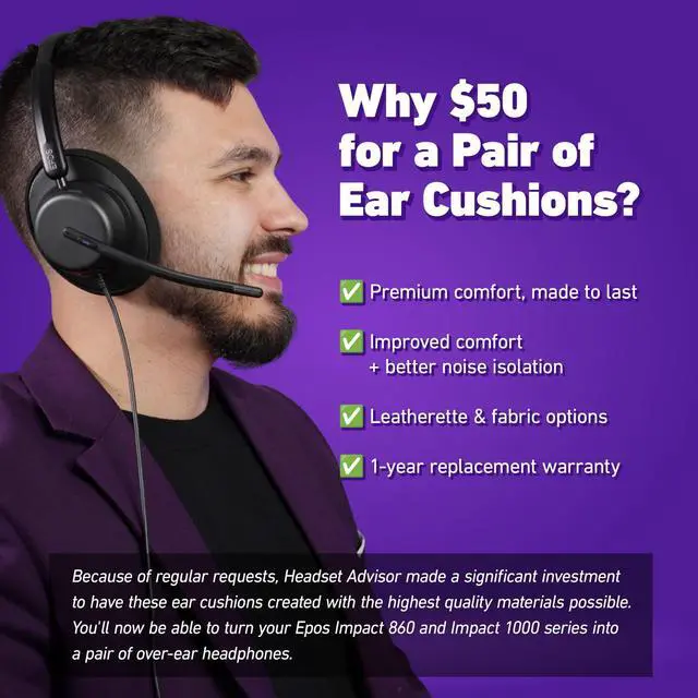 Each purchase includes two ear cushions and comes with a 1-year free replacement warranty. Whether you're taking calls in a noisy home office or participating in extended virtual meetings, these custom-fitted cushions will elevate your Epos Impact headset's comfort to new levels.