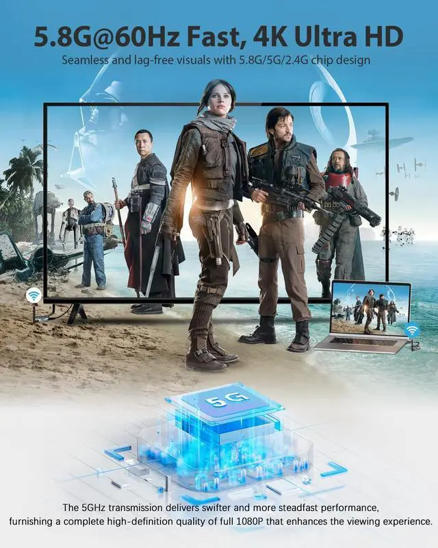 Get extra receivers: B0DQQ5C2VQ ^^ 4K Input Smooth & VibrantThe DARLYOR wireless HDMI extender supports 4K input and delivers crystal-clear 1080P@60Hz output. Enjoy sharp images, vivid colors, and synchronized audio-video performance with under 0.1 s low latency. Ideal for streaming movies, presentations, or real-time monitoring without any signal loss. ^^ True Plug and PlayNo need for complicated setup. This HDMI wireless transmitter and receiver pair is pre-tested and ready to use out of the box. Just plug in the HDMI source and displayno Wi-Fi, no Bluetooth, no apps required. A true plug-and-play wireless HDMI solution for instant connectivity. ^^ 165FT Long Range ConnectionEnjoy reliable transmission up to 165 feet (50 meters) in open spaces, or up to 32 feet (10 meters) through wallsthanks to strong 5.8GH z signal technology. Even in crowded environments, the wireless channel can be adjusted via the app to maintain a smooth, stable connection. ^^ Use Phones/Tablets as ScreensEasily expand your viewing experience to mobile devices. Simply download the free RScreen app to stream your HDMI source to up to 8 iOS/Android phones or tablets. Great for mobile demos, presentations, or personal entertainment.