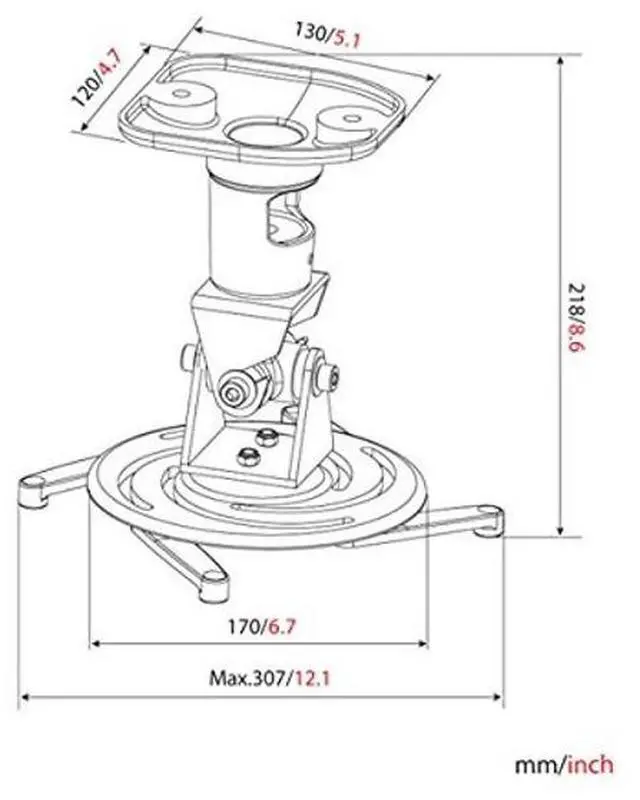 The adjustable mounting arms adapt to projectors allowing for flexible installation