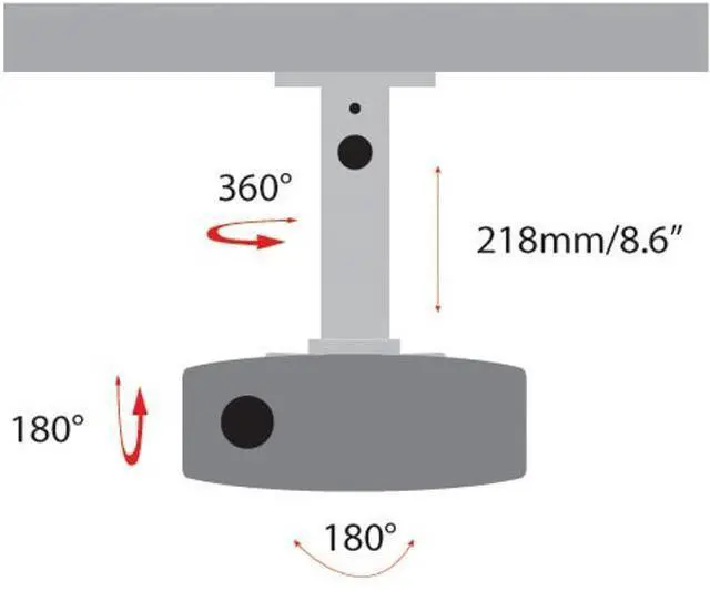 This cast aluminum projector mount adds versatility and simplicity to mounting a projector to a ceiling ^^ The adjustable mounting arms adapt to projectors allowing for flexible installation ^^ Tilt: Yes