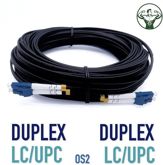 Armored steel fiber optic cable for outdoor and indoor LC/UPC to LC/UPC OS2 singlemode duplex, 9/125 um. Shielded steel tape inside the outer jacket resists damage caused by harsh environments, stress, and rodent bites. High-quality fiber ensures reliable connections in harsh environments (machinery, factories, railroads, churches, etc. ).