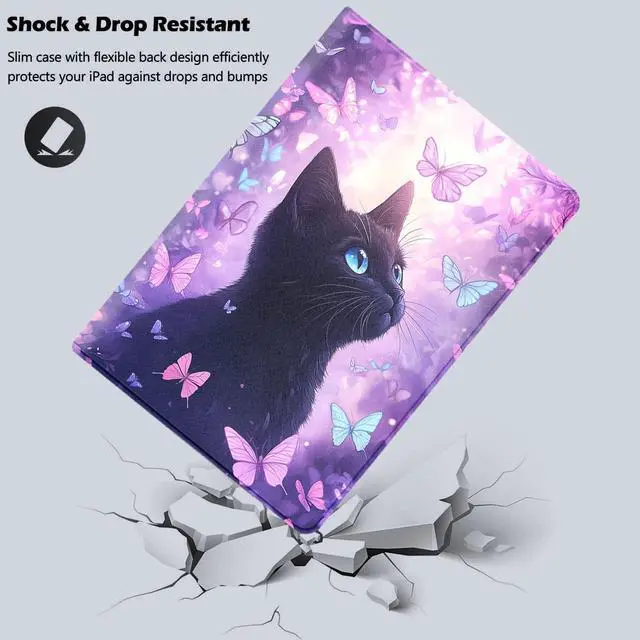 DSRGRGFDJ Tablet Case for iPad 10th Generation 10.9 Inch with Magnetic Auto Wake/Sleep and Multi-Angle Adjustable Stand Cover - Black Cat Purple Butterfly