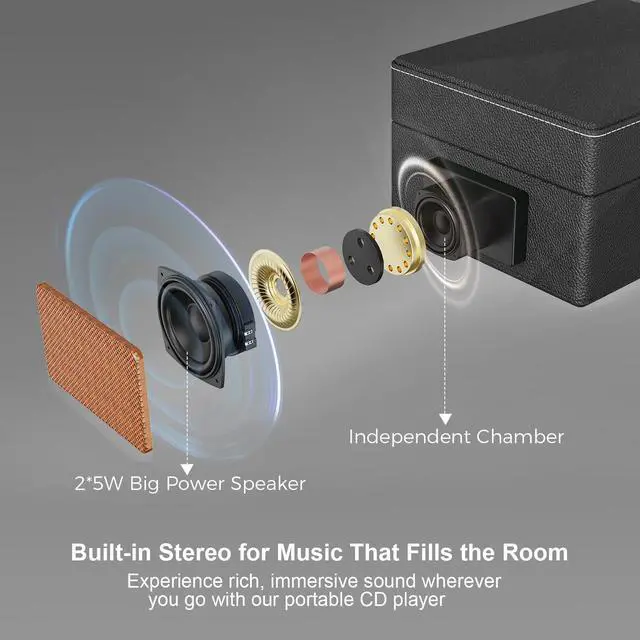 HIFI speakers: Dual HIFI stereo portable CD player with speakers, and the volume can be adjusted as needed. It is also equipped with a remote control that supports control within 10M. There are a variety of buttons on the remote control to help you control music/volume. Even if you are not next to the CD player, you can enjoy music easily and comfortably while sitting on the sofa.
