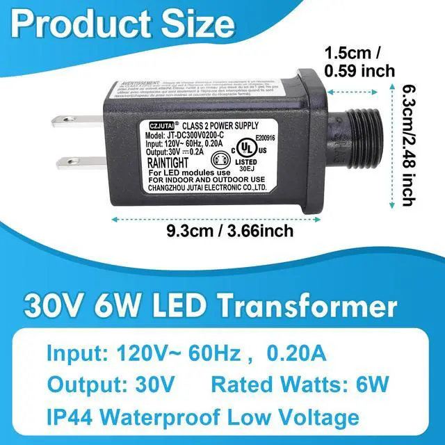 This power supply operates at a high efficiency level, trimming down your electricity expenses while maintaining the dazzling spectacle of your Christmas display. Durability for Long-lasting PerformanceRuggedly constructed to withstand harsh outdoor conditions, the CZJUTAI JT-DC300V0200-C is housed in a durable, heat-resistant casing, guaranteeing dependable performance year after year. Elevate your holiday decor with the CZJUTAI JT-DC300V0200-C Power Supply the trusted choice for a magical, energy-efficient Christmas lighting experience.